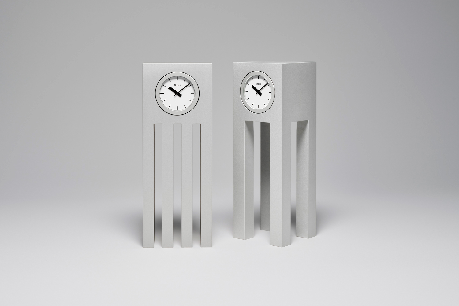 The Hotel Il Palazzo debuted in Fukuoka in 1989 as a pioneering designer hotel. This landmark was directed by Shigeru Uchida, who also designed its interior, with the architecture being designed by Aldo Rossi, one of the most iconic architects of the 20th century. Uchida designed the table clock DEAR VERA with a form similar to the hall clock DEAR MORRIS, which he created around the same time for this hotel. Named after Rossi’s daughter, Vera reflects Uchida’s deep respect for the famous architect. Originally sold under Uchida’s private brand, Chairs, the clock was later produced by the renowned Italian design brand, ALESSI. This newly crafted DEAR VERA is a reissue under the Chairs brand and features a dial based on the ALESSI edition.