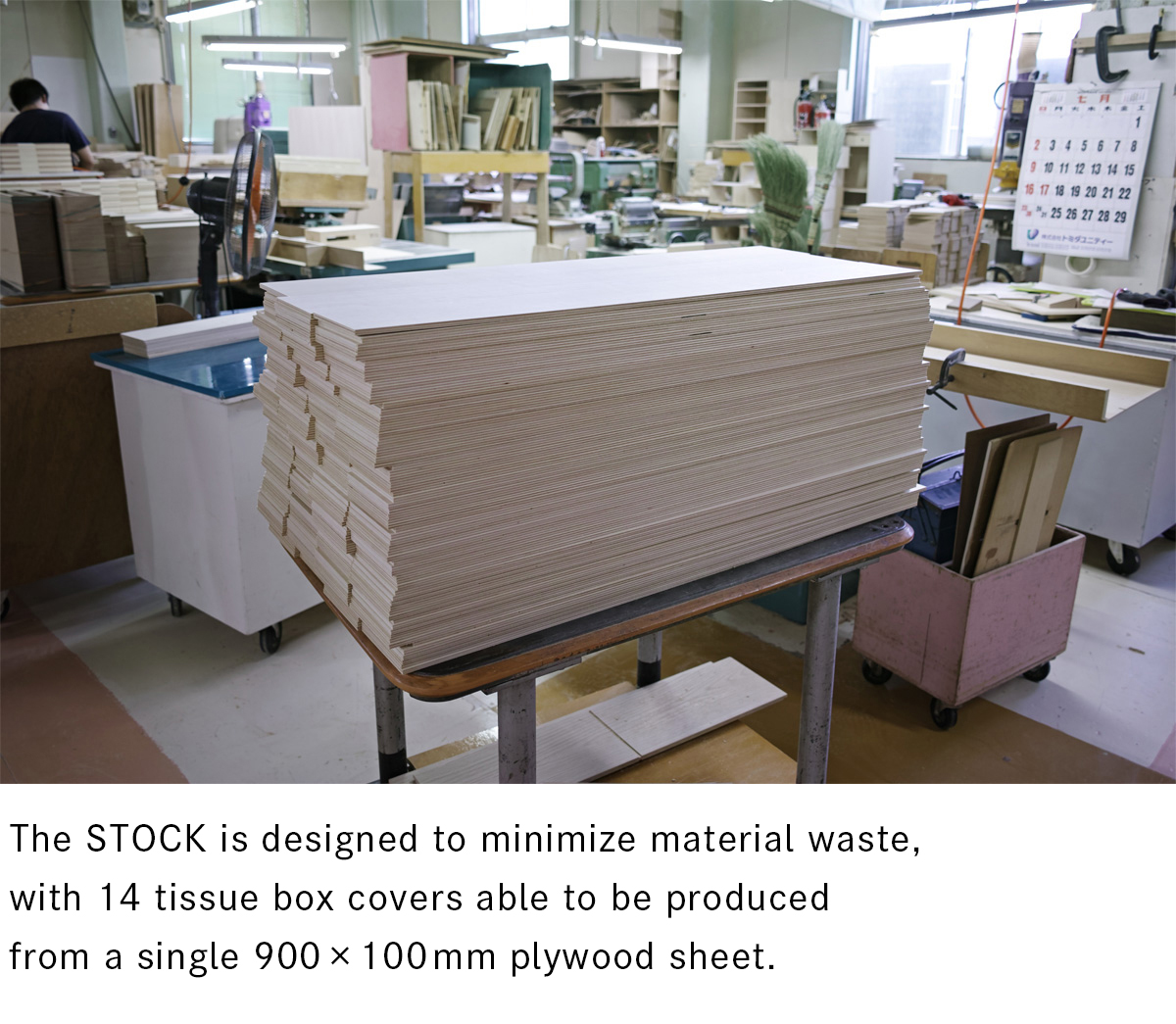 The STOCK tissue box cover was designed to maximize the use of standard-sized plywood sheets, thus minimizing material waste.