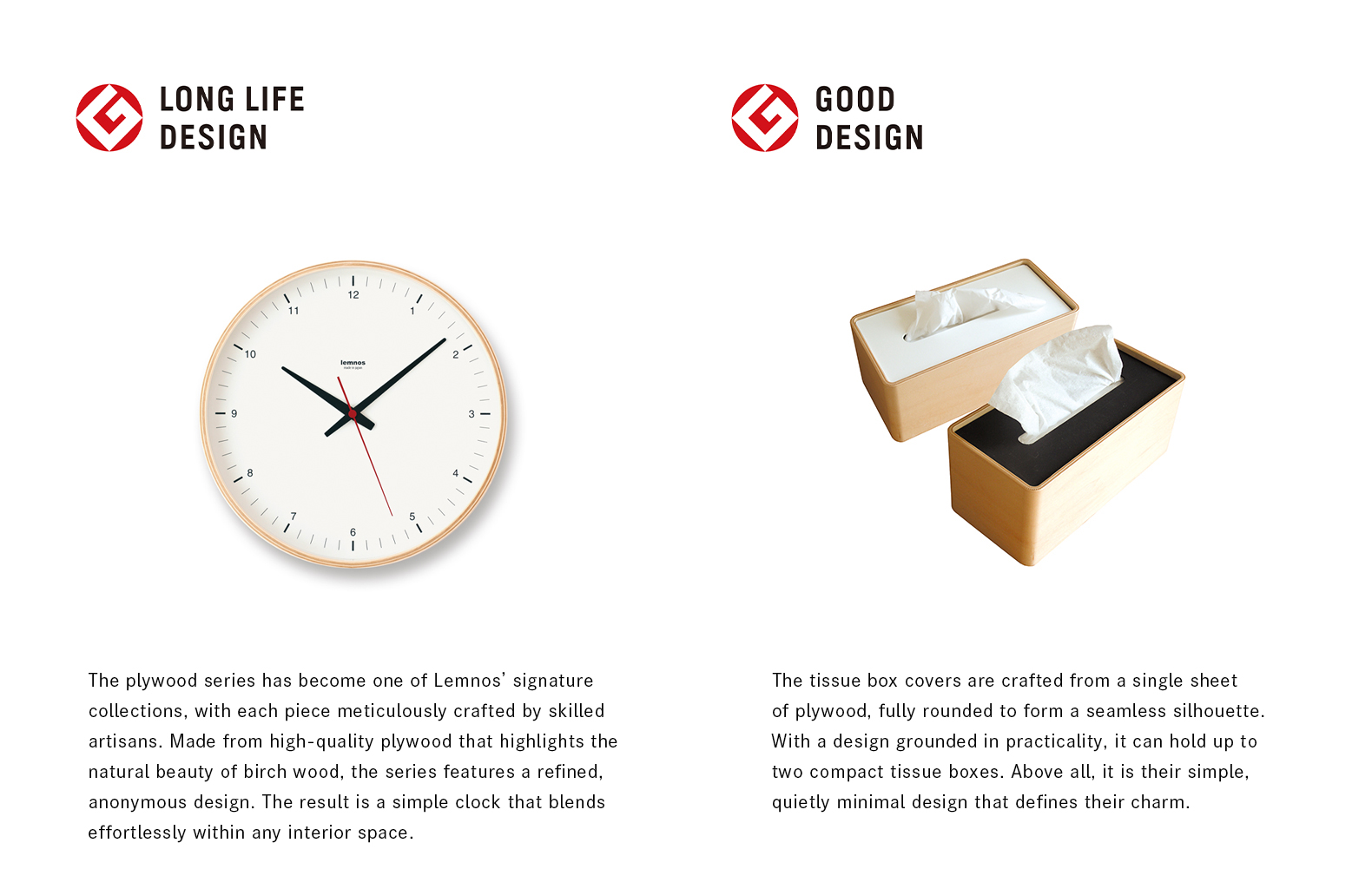 The long-selling plywood series features the Plywood Clock (winner of the 2013 Long Life Design Award) and the STOCK tissue box cover (winner of the 2004 Good Design Award). Designer Toyoshi Mori, who created both products, shares the story of how the plywood series came to life.