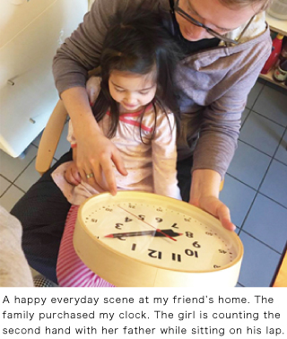 Looking back on that time, however, I think I had a stubborn side. I felt the necessity of “a clock having a clear reason for it being used with kids” even while deciding on its size. Also, I had no idea about making the original clock frame that president Takata had suggested. There could have been time and development cost, which may have led to a high price for the clock. However, regardless of that, spending too much time on the decision for the clock frame would have meant less time to think about the detailed contents of “an analog clock featuring numbers in the sexagesimal system.” It was like putting the cart before the horse. It was more important for me to produce a clock in time for the child whose mother I had made cry to go through the period of special sensitivity for numbers, and then to apologize to her if she were to rejoin the workshop. Furthermore, families with children who will join my workshop would be able to share smiley time more frequently.