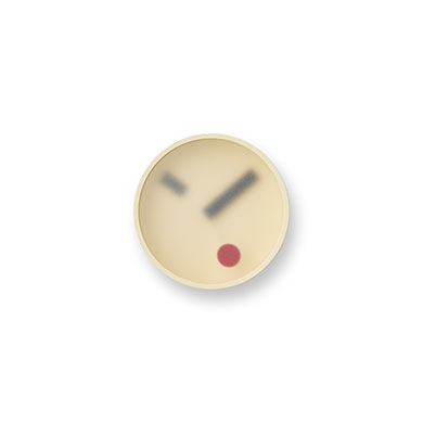 ぼんやりと見える針の動きが半透明のガラス越しに曖昧な時の気配を柔らかく伝えてくれます。色は空間に馴染み、より気配として佇むよう壁の素材に合わせた3色で、秒針の赤い点がゆっくりと回る様はオブジェのようです。薄く繊細ながら強靭なアルミ枠体は鋳造の技術が活かされ、その製造を高田製作所がおこなっています。