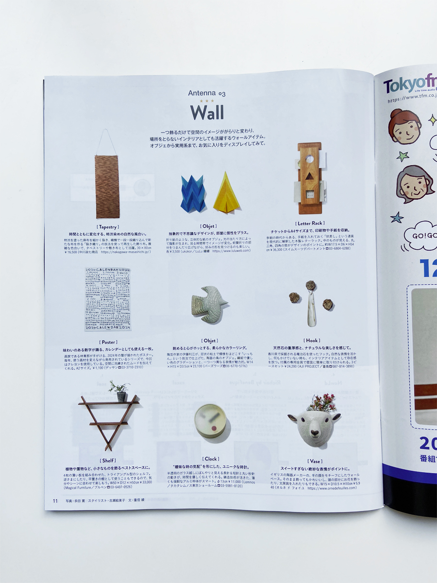 マガジンハウスが発行する『anan No.2378 2023年12月27日号』(12月20日発売)の特集「Antenna」にて、小泉誠氏デザインによる掛け時計「kehai」が紹介されています。