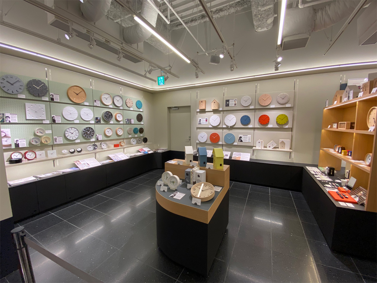 タカタレムノスの時計とそのデザインに関わったデザイナー紹介のほか、カッコー時計を中心としたコーナーと素材コーナー(⾦属・⽊材・磁器・その他)を分けて展示。素材コーナーでは、卓越した⽇本のものづくりを実現するクラフトマン(職人)がつくる手技の仕上げを是非間近でご覧ください。