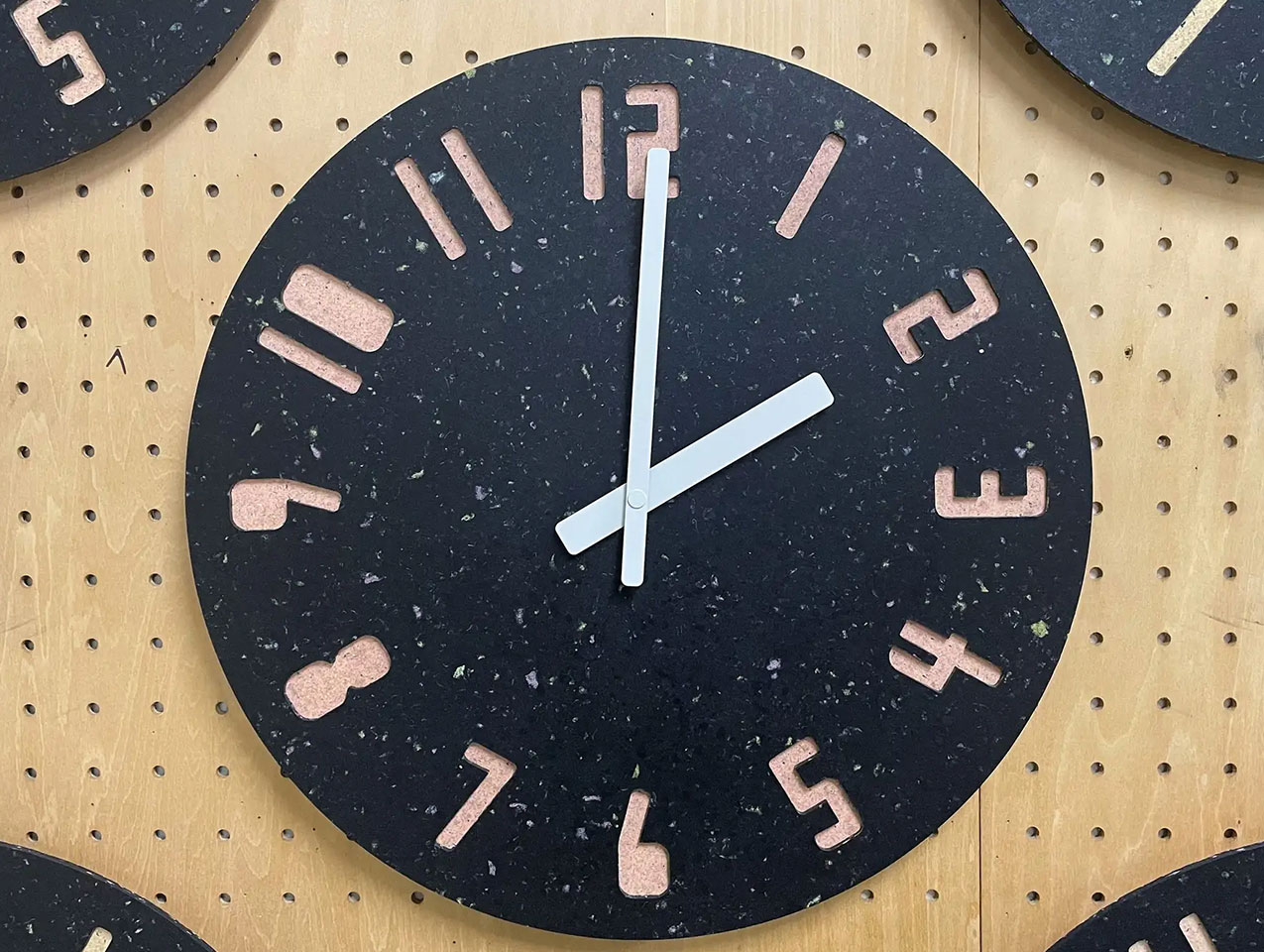 「PANECO CLOCK」(五十嵐久枝氏デザイン)は、廃棄衣料品を原料とするサステナブルな循環型繊維リサイクルボード『PANECO®』(株式会社ワークスタジオ)を本体に使用したリユース・リサイクル可能な掛け時計です。