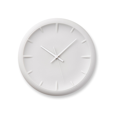 ガバ鋳込みと呼ばれる製造方法の特徴をいかした、磁器の時計です。